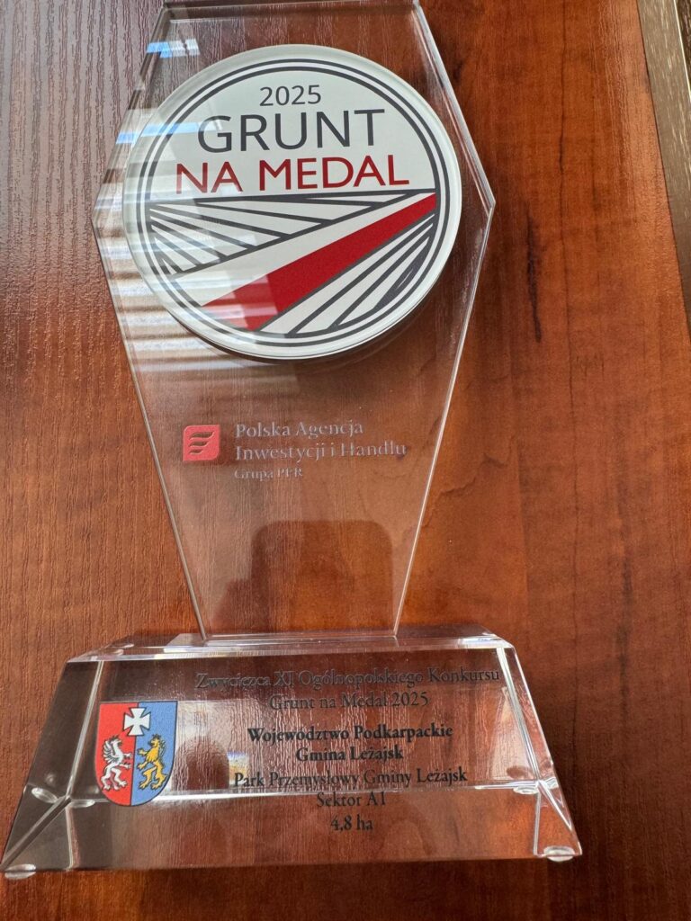 Podczas wydarzenia, które odbyło się 6 listopada w Warszawie Polska Agencja Inwestycji i Handlu podsumowała XI edycję prestiżowego programu „Grunt na Medal”. Spośród 628 terenów zgłoszonych do Generatora Ofert Inwestycyjnych PAIH wybrano 16 zwycięskich lokalizacji – po jednej z każdego województwa. Wśród wyróżnionych znalazła się Gmina Leżajsk, której oferta została oceniona jako jedna z najatrakcyjniejszych w regionie. Wyróżnienie odebrał Wójt Gminy Krzysztof Sobejko.