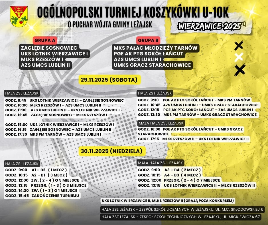 W najbliższy weekend Leżajsk stanie się miejscem rywalizacji młodych koszykarek, które wezmą udział w Ogólnopolskim Turnieju Koszykówki U-10K o Puchar Wójta Gminy Leżajsk. Zmagania będą rozgrywane w hali sportowej Zespołu Szkół Licealnych oraz hali Zespołu Szkół Technicznych, a do udziału zgłosiły się zespoły z kilku województw, reprezentujące wysoki poziom szkolenia młodzieży.