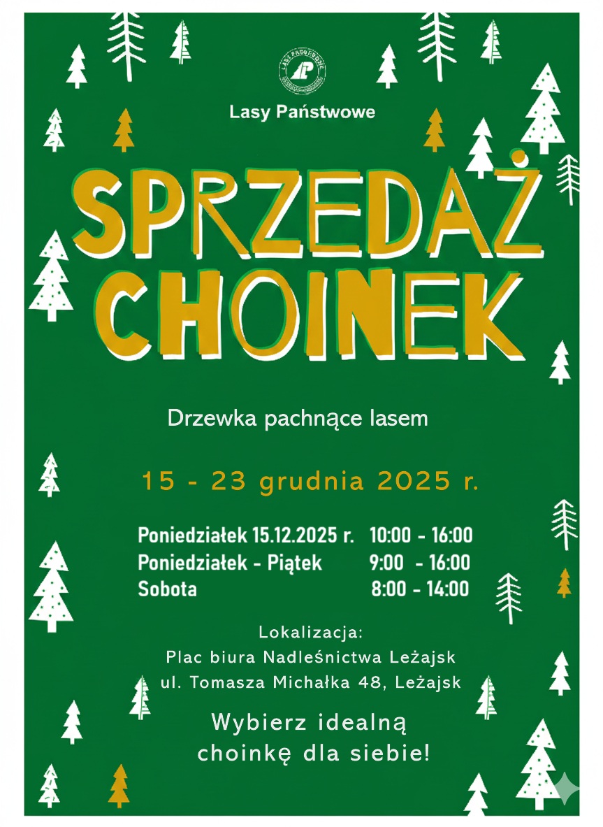 Sprzedaż rozpocznie się w poniedziałek 15 grudnia w godzinach 10:00–16:00, a w kolejnych dniach – od poniedziałku do piątku – drzewka będą dostępne od 9:00 do 16:00. W soboty punkt będzie czynny od 8:00 do 14:00. Leśnicy przygotowali różne rodzaje i rozmiary choinek, tak aby każdy mógł dopasować je do swojej przestrzeni. Sprzedaż prowadzona będzie przy siedzibie Nadleśnictwa Leżajsk, przy ul. Tomasza Michałka 48. Organizatorzy zachęcają mieszkańców do zakupu lokalnych drzewek, które stanowią naturalną i bezpieczną alternatywę dla sztucznych ozdób.