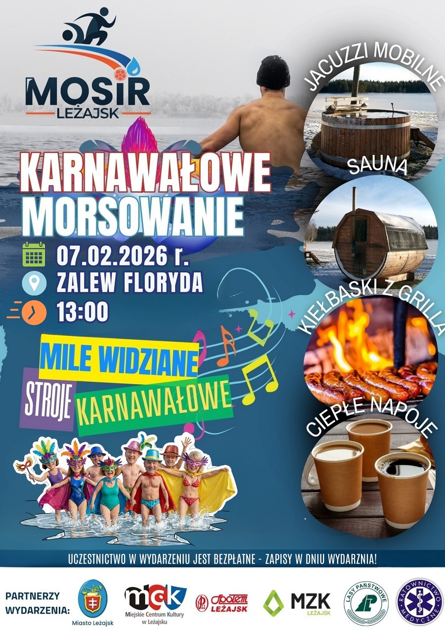 Początkiem lutego nad Zalewem Floryda w Leżajsku odbędzie się karnawałowe morsowanie, organizowane przez MOSiR Leżajsk. Wydarzenie skierowane jest zarówno do doświadczonych miłośników zimnych kąpieli, jak i osób, które chcą spróbować morsowania po raz pierwszy.