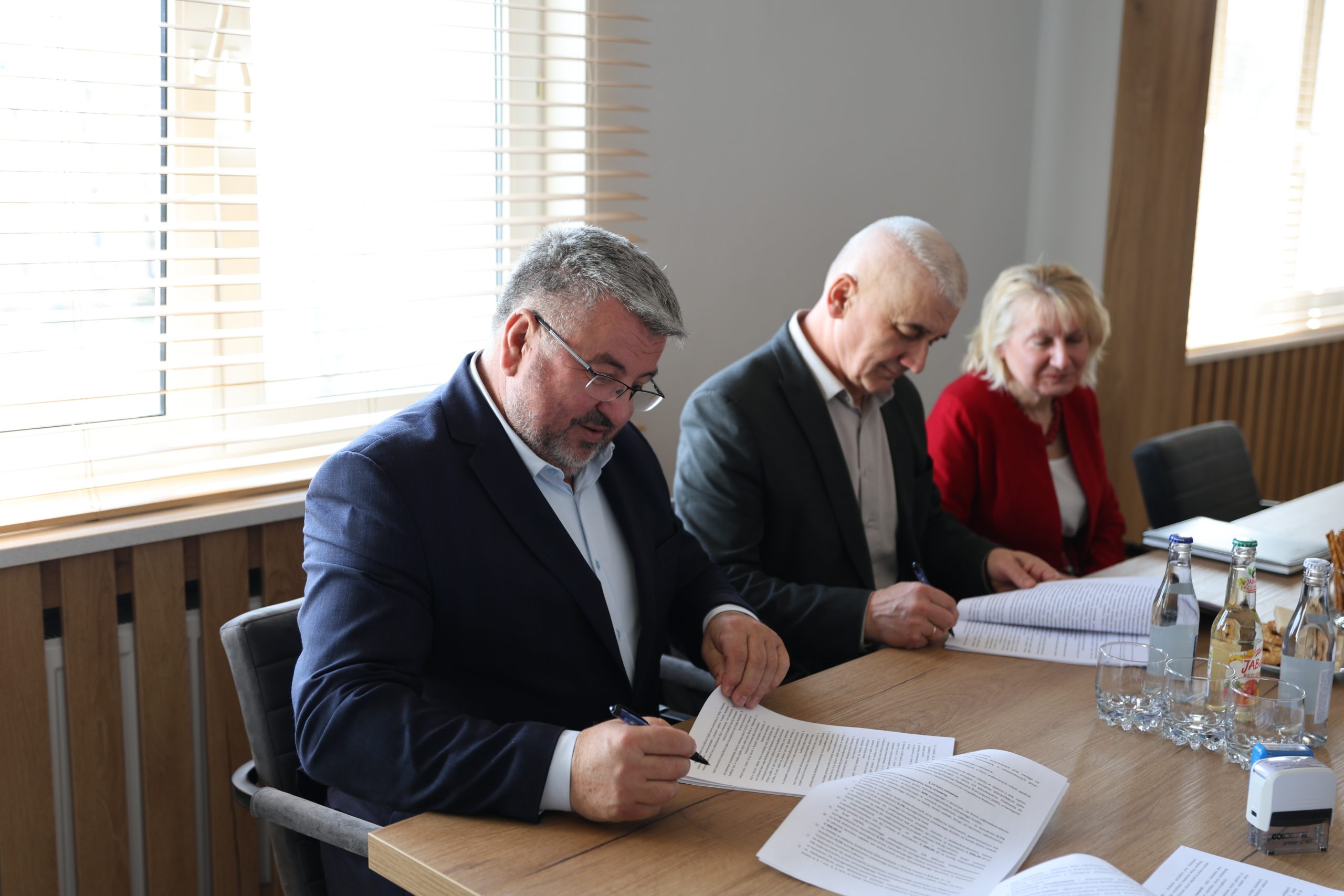 W spotkaniu upamiętniającym podpisanie umowy uczestniczyli również Członek Zarządu Powiatu Wanda Rakszawska-Stopyra oraz pracownicy Wydziału Inwestycji i Zamówień Publicznych, którzy będą czuwać nad prawidłowym przebiegiem prac budowlanych.