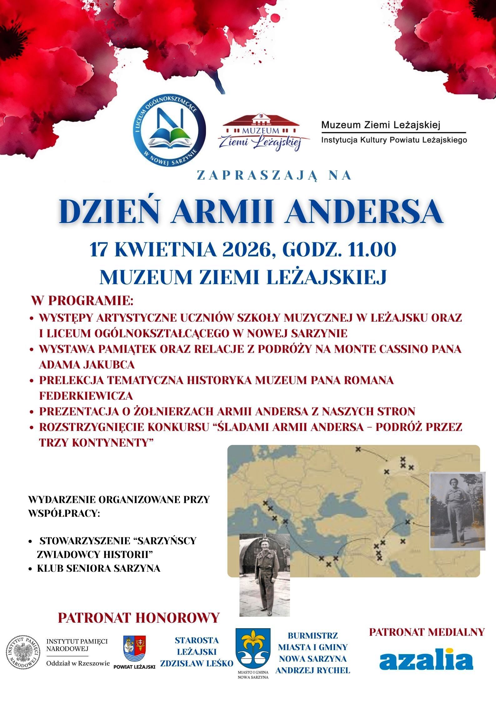 Program wydarzenia łączy elementy edukacyjne i artystyczne. Na scenie zaprezentują się uczniowie Szkoły Muzycznej w Leżajsku oraz licealiści z Nowej Sarzyny. Uczestnicy będą mogli zobaczyć wystawę pamiątek oraz wysłuchać relacji z podróży na Monte Cassino Adama Jakubca. Ważnym punktem będzie także prelekcja historyczna, którą wygłosi Roman Federkiewicz, przybliżając losy żołnierzy Armii Andersa. Nie zabraknie również prezentacji poświęconej bohaterom wywodzącym się z naszego regionu. Podczas wydarzenia nastąpi także rozstrzygnięcie konkursu „Śladami Armii Andersa – podróż przez trzy kontynenty”, którego celem było m.in. zachęcenie młodzieży do zgłębiania historii.